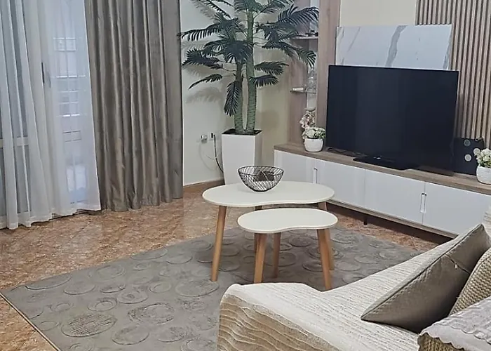 ベッドルーム2室のVlorëRoxy'S Houseアパートメントはテラスがあり、ヴロラ大学から歩いて10分に位置しています。 広々とした82m²のアパートではWi-Fiを利用できますし、車でお越しのお客様のために無料の専用駐車場もあります。